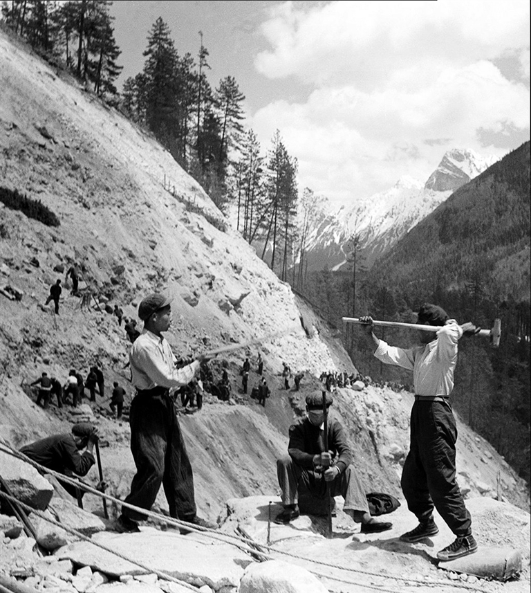 1950年3月,经历过淮海战役洗礼的十八军怀揣慷慨誓言,拿起铁锹、钢钎、十字镐,凿巨石开路、蹚冰河架桥,劈开14座大山,穿过8条大断裂带,跨越数条险滩激流和数不清的沼泽冰川,4年后,川藏公路修通。