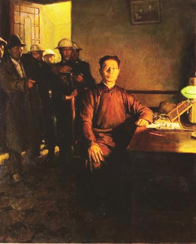 油 画 《红色电波之李白烈士就捕》李前