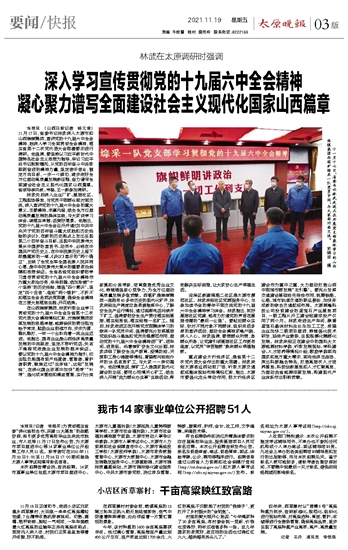 深入学习宣传贯彻党的十九届六中全会精神 凝心聚力谱写全面建设社会主义现代化国家山西篇章