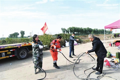 虽然加入救援队才两年,但张慧娟经常冲在救援一线。2020年春节,疫情暴发后,得知郝庄一带有的居民小区没有院墙,防控压力很大。从正月初二开始,张慧娟便与队友驻守在居民楼下。登记往来人员信息,测量来访者体温,为居民守好“安全大门”。