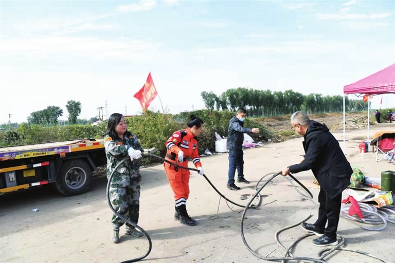 抵达受灾最严重的大孝堡镇北桥头村,张慧娟惊呆了,现场受灾情况远比她想象的更严重。整个村庄都被淹没,村民已经转移到堤坝上。为了尽快帮村民回到家园,张慧娟和队友们迅速进入工作状态。他们找到水位最低处安装了发电机和抽水泵,开始现场抽水。整整五天五夜,张慧娟与队友们轮流值守现场。5天后,积水渐渐被抽干,地面露出来了,村民的牲畜也被他们救出。
