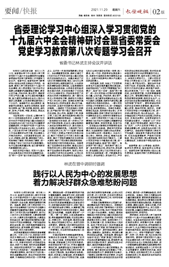 省委理论学习中心组深入学习贯彻党的十九届六中全会精神研讨会暨省委常委会党史学习教育第八次专题学习会召开