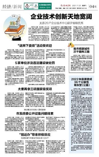 ~~~太原20户企业技术中心获评省级优秀