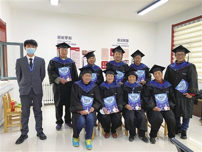11月19日,老人们穿上“学士服”,拍下了珍贵的“毕业照”。