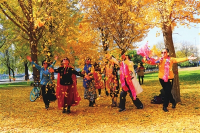 太原的深秋,赤橙黄绿青蓝紫,色彩丰富。市民赏秋、踏秋、闹秋,尽情释放着心中的快乐。 杨靳葆 摄
