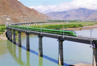 2021年6月25日,拉萨至林芝铁路开通运营。经过6年多的建设,来自五湖四海的建设者不畏困难、艰苦奋斗,攻克高原铁路多项难题,终于建成西藏首条电气化铁路,“世界屋脊”进入“复兴号”时代。