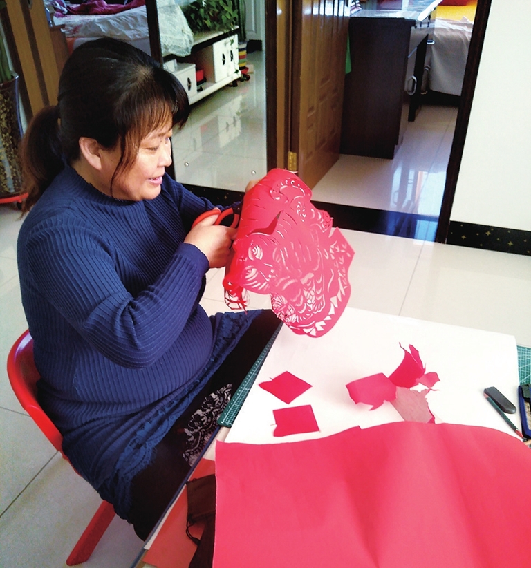 多年创作,张存爱并不囿于经验、技巧,与时俱进,构思新画面,讴歌新时代。通过网络,她和全国各地剪纸爱好者们交流,积极参与剪纸活动及展览,带动周围人脱贫致富。