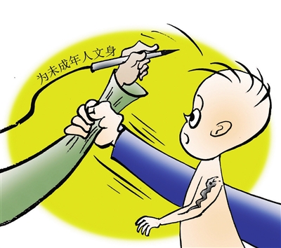 同未成年人整容一样,未成年人文身究竟该不该禁止也一直是各界讨论的话题。中国政法大学青少年犯罪与少年司法研究中心主任皮艺军近日接受采访时表示,目前法律对未成年人文身没有相关规定,但考虑到文身对未成年人身体和精神等方面带来的不良影响,应通过完善法律规定来限制未成年人文身。(《法治日报》11月23日)