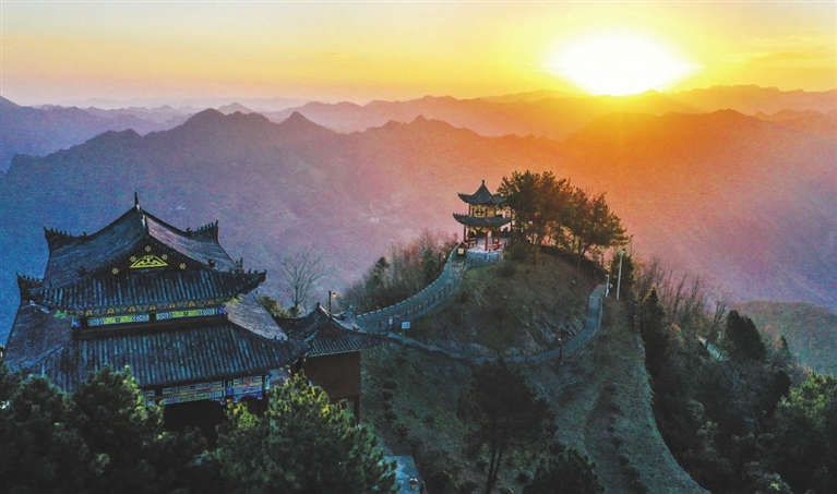 11月23日,朝霞映照着庙山寨主峰(无人机照片)。