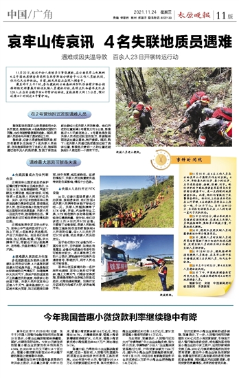 ■11月13日,这4名工作人员在云南哀牢山开展野外作业时失联。4人中,年龄最大的32岁,最小的25岁,名字是张金榜、杨敏、张瑜、刘宇。他们供职的中国地质调查局昆明自然资源综合调查中心,是一支精锐的地质调查队伍。此前,他们均曾服役于武警黄金部队。按计划,2名接送车司机在山外等候,4名地调队员将在山上居住一晚,于14日下山。当日12时59分,与司机电话联系之后,4人的电话一直处于关机状态。