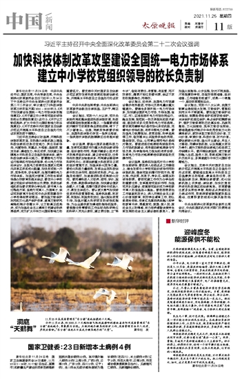 加快科技体制改革攻坚建设全国统一电力市场体系 建立中小学校党组织领导的校长负责制