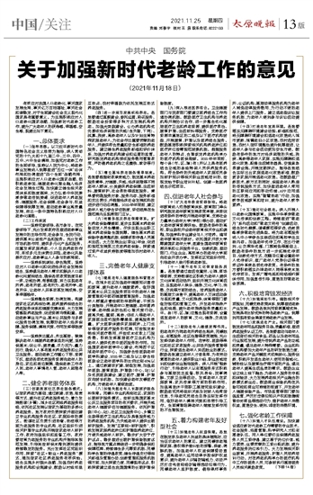关于加强新时代老龄工作的意见