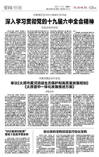 学习贯彻党的十九届六中全会精神 中央宣讲团报告会在太原举行