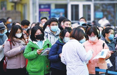 11月28日,中央机关及其直属机构2022年度考试录用公务员笔试开考,山西地区共497个职位,计划招录950人。图为太原十二中学校考点,考生有序进入考场。记者 邓寅明 摄