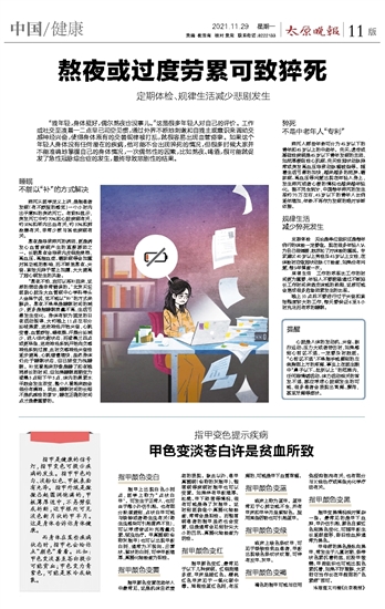 “熬夜不怕,我可以再补回来,这样的想法是非常错误的。”北京天坛医院心脏及大血管病中心学科带头人金泽宁说,觉不能以“补”的方式来解决。熬夜不单单是睡眠时间的减少,更多是指睡眠质量不高,生活节奏发生变化。身体有较为固定的日夜活动规律,大约晚上11点左右分泌褪黑素,迷走神经开始兴奋,心跳变慢、血管舒张、唾液腺、汗腺分泌减少,进入低代谢状态;而凌晨三四点或更早些,迷走神经系统开始向交感神经系统过渡,此时交感神经兴奋性逐步提高,心跳缓慢增快,虽然身体仍处于睡眠状态,但已转变为浅睡眠。补觉看起来好像是睡了和夜晚同样长的时间,但如果睡眠周期变为凌晨3点到下午3点,体内的激素水平就会发生改变,整个人看起来就会很没有精神。因此,睡眠时间的长短不是机械性的累计,睡在正确的时间点才是最重要的。