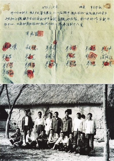 这是1978年,安徽省凤阳县小岗村农民签订“大包干”契约,将土地承包到户的情景。小岗村村民冒着风险,在包干合同书上按下手印。四川、甘肃、云南、广东等省份的一些地方也放宽政策,采取了类似做法。这些大胆尝试,揭开了农村经济改革的序幕。
