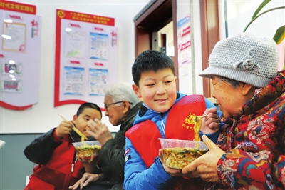 11月30日,桥东街道东岗社区联合爱心餐馆开展了“小小志愿者 冬日送温暖”活动,孩子们给低保老人送上午餐。该社区强化“小小志愿者”队伍建设,营造人人热心公益,奉献爱心的氛围。 张昊宇 张囡 摄