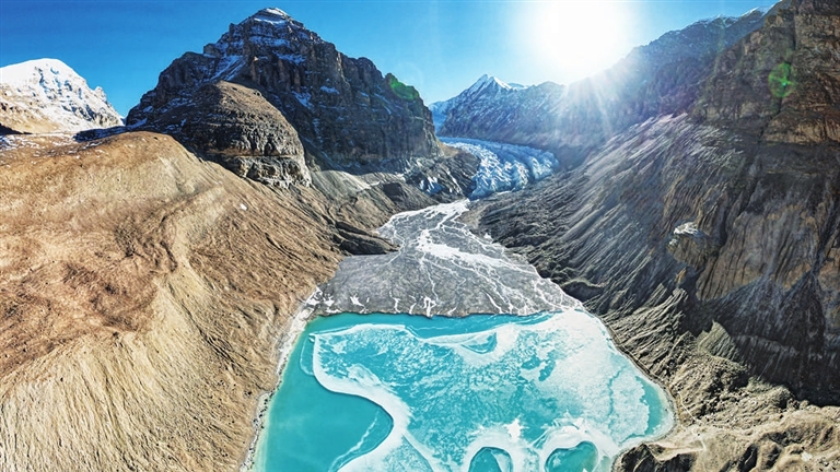 曲登尼玛冰川位于西藏日喀则市岗巴县境内。这里海拔超过5000米,群山环抱、冰湖相伴,景色壮观独特,鲜为人知。新华社 发