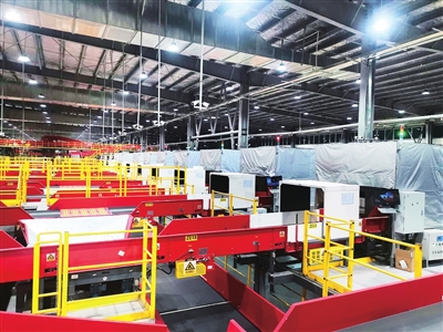 每一件快递的外包装上,都会贴一张面单,上面的条形码和二维码相当于快递的“身份证”,扫描后可读取快递信息。此前在分拣环节,采用传统的单面扫描,把快递放在传送带上时必须面单朝上,若是角度不合适还会出现漏扫的情况。新的“六面扫描”设备有6个面,全部装有摄像头,无论面单被贴到快递的哪个位置,扫描仪都可以通过射频扫码快速地识别条码,准确判断它将流转的方向,然后快速让每一件快递按照不同的目的地流向它该去的滑道,可大大提升分拣效率。