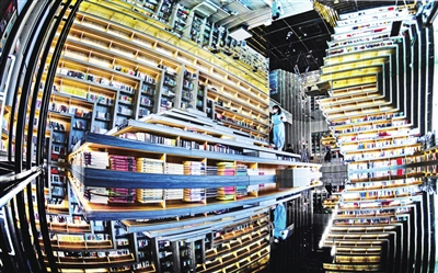 钟书阁书店,阶梯式书架“层峦叠嶂”,不断延伸的场景,让人时时感受到知识的力量。