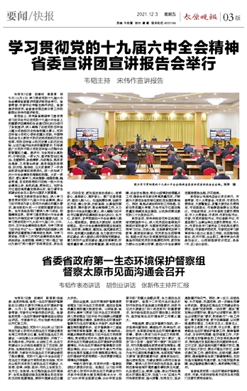 学习贯彻党的十九届六中全会精神 省委宣讲团宣讲报告会举行