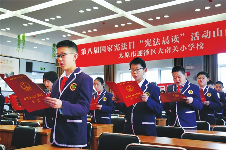 12月3日,迎泽区大南关小学开展“宪法晨读”活动。该校作为第八届国家宪法日“宪法晨读”山西分会场,通过让学生们朗读宪法、收看直播等方式宣传宪法知识。 徐浩轩 摄