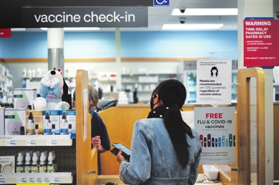 12月4日,在美国加利福尼亚州北部伯灵格姆市,一名女子排队等待注射新冠疫苗加强针。 新华社 发