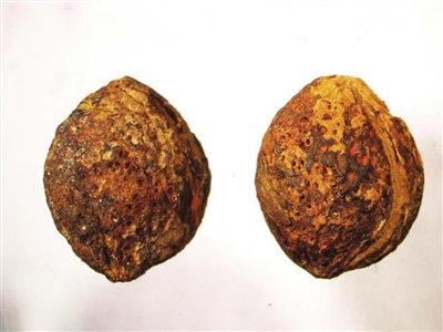 经研究人员对比鉴定发现,稻、粟、麻、梅呈棕褐色,甜瓜呈土黄色;水稻的小花已结成块状,稻谷与粟的颖果、麻的种子均已降解殆尽,但甜瓜的种子与梅的果核相对保存较好。 据新华社电