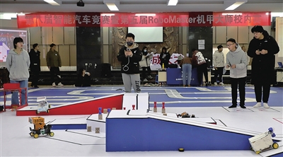 12月5日,旨在培养大学生创新意识,激发从事科学探索的兴趣和潜能的太原理工大学第八届智能汽车竞赛进入总决赛。 图为总决赛现场。张昊宇 摄