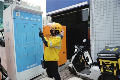 12月6日,亲贤街长治路口,省时省力的共享电动车换电柜成为外卖小哥的最爱。只需扫码,即可轻松更换电池,外卖工作变得更加高效便捷。 记者 牛利敏 摄