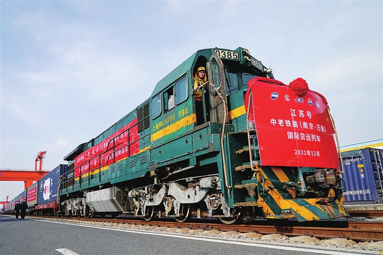 当日,随着载有76个标箱出口货物的“江苏号”中老铁路国际货运列车从中国铁路上海局集团有限公司南京货运中心尧化门铁路货场启程,长三角地区开行的首趟中老铁路(南京—万象)国际货运列车正式开行。