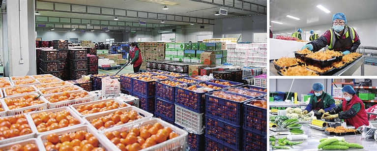 12月11日,在太原市鸿新农产品有限公司配送车间,工人们在进行分装作业。该公司是农产品加工配送龙头企业,实施的菜篮子社区果蔬直通车项目已入驻我市110个社区,惠及200多个社区的居民,满足居民对生鲜食材的新鲜、安全、实惠、便捷的需求,让美食和健康成为家庭餐桌的主旋律。 贾鹏 李学军 摄