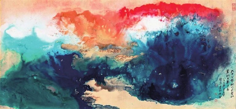 据拍卖行介绍,此幅《秋曦图》创作于1978年,这一年,年届八十岁的张大千迁居台湾“摩耶精舍”新居,在这里开启生命中最后的艺术耕耘。此时香港著名企业家、也是张大千的忘年交吕国文前来拜访,恳求张大千为他创作一幅最好的泼彩画作。张大千夫人徐雯波为张大千身体着想,本想婉言谢绝,但张大千欣然答允了吕国文的请求,以新居所在的群山雨后晨曦的景色为灵感,历时近二十日创作出这幅巨制。