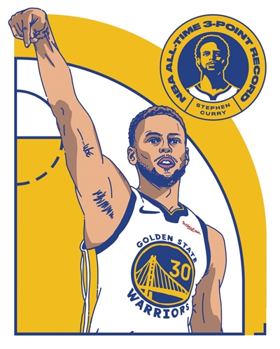 雷·阿伦用1300场比赛投进2973个三分,雷吉·米勒则用1304场比赛投进2560个三分。而库里超越这些,却只用了788场比赛。