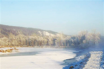 零下40多摄氏度的低温使呼中区城镇周边的河边出现了雾凇美景,远远望去,两岸高大的树木尽在“云雾”之中,如同“银枝玉条”映衬着沿河“百里画廊”。
