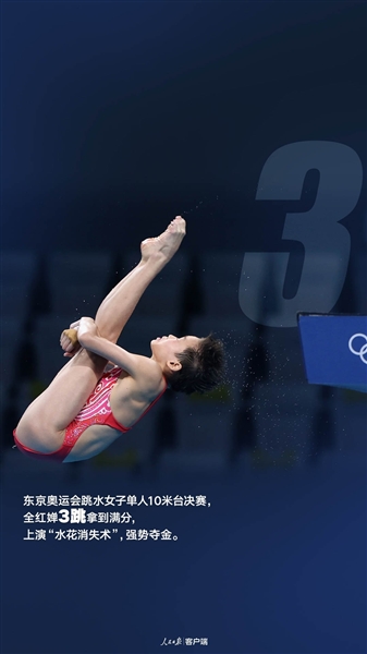 | 东京奥运会跳水女子单人10米台决赛,全红蝉3跳拿到满分,上演“水花消失术”,强势夺金。 |