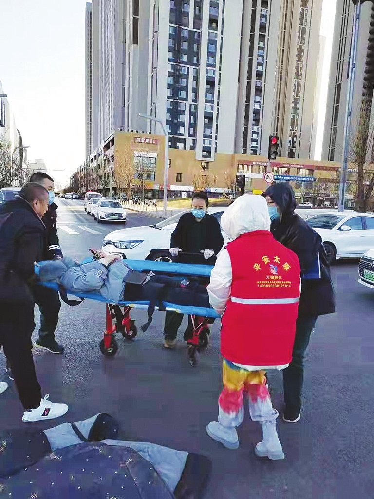 12月15日早晨,长兴北街社区网格员王素芬在上班途中,在广南街与新晋祠路交叉口目睹一起交通事故,一辆汽车将一辆电动车撞翻,电动车主伤得不轻。王素芬见状立即赶过去帮忙,一面先扶住伤者,一面报警和拨打急救电话。为避免再引发其他意外,在暂时安置好伤者后,王素芬又搬来几个隔离墩,放在事故现场,引导人流车流有序绕行。很快,急救人员和交警赶到现场,王素芬协助急救人员将伤者一起抬上救护车。 记者 韩睿 通讯员 周媛 摄