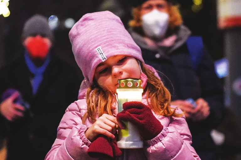 12月19日,在奥地利维也纳,一个小女孩用烛光悼念新冠逝者。当天,维也纳举行烛光纪念活动悼念新冠逝者。 新华社 发