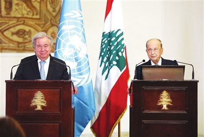 当天,古特雷斯抵达贝鲁特开始对黎巴嫩进行为期3天的访问。他在与黎巴嫩总统米歇尔·奥恩会谈后举行的记者会上表示,国际社会没有为黎巴嫩、约旦和其他敞开边境和胸怀接收难民的国家提供足够支持。他呼吁所有联合国会员国承担起责任,增加对黎巴嫩的支持。 新华社 发