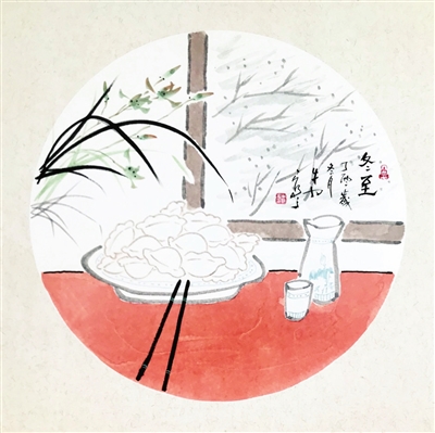 在男人“拉太阳”的同时,没有资格参加的女人在家里忙着包饺子,火盆里的火烧旺以后,饺子也可以出锅了。照例第一碗盛起来,放到祖先的牌位前,既表达孝心,更有让祖先保佑全家平安的意思。直到此时,才可以把那盏灯收起来,待得来年冬至再用。现在,随着社会的发展,油灯也早已绝迹,屋里有了暖气,也不会再生明旺旺的火盆了,只有包饺子祭祖的习俗还在不少地方得以保存。