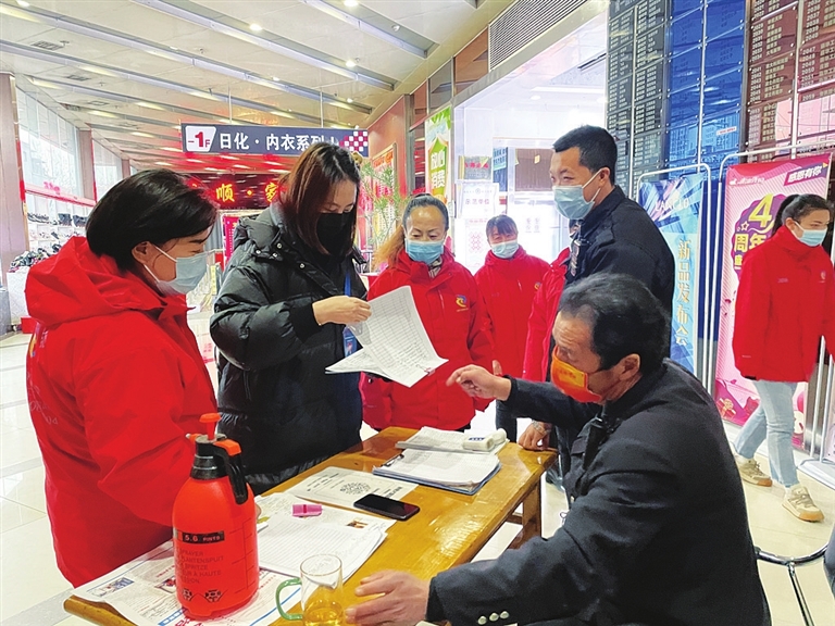 12月23日,朝阳二社区工作人员分为几组,分别前往辖区龙马服饰广场和新精品商城。临近“两节”,商场顾客明显增多,这对于疫情防控和安全提出更高要求。“进入商场的顾客一定要检查行程码,并测量体温,提醒顾客戴口罩入内……”在商场入口,社区工作人员检点着商场的防控措施。同时,就商场的消防设备是否齐全、是否有安全隐患开展检查,以此强化各单位安全忧患意识和责任意识,有效防止各种安全事故的发生,夯实疫情防控主体责任,有效提升疫情防控应对能力。