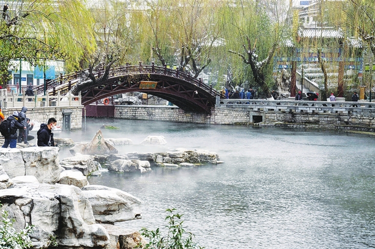 当日,受强冷空气影响,山东省济南市气温大幅下降,城区内诸多泉水呈现出“水汽蒸腾”的独特景致。 新华社 发