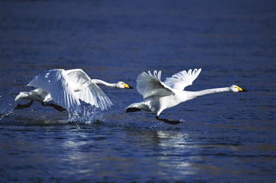 近日,前来越冬的近百只天鹅在青海省海南藏族自治州贵德县境内的黄河湿地觅食休憩,为冬日黄河带来勃勃生机。近年来,青海省加大力度保护治理境内黄河流域,改善当地生态环境,为越冬候鸟提供良好栖息地。 新华社 发