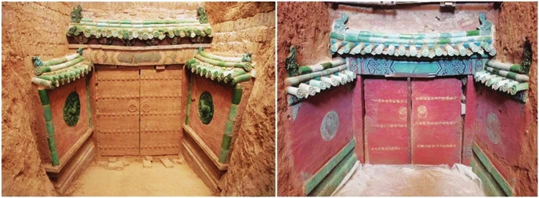 晋端王墓圹平面为“工”字形,南北长24米、东西宽8米,规模居明代中后期藩王墓之首。M3墓主人为端王夫人院氏,前中后三室结构,规模不减近年发掘的藩王墓。其内部用青膏泥修饰,墓门门钉描金等,比端王与王妃合葬墓、继妃王氏墓的装饰更考究。墓葬填土积石,且有四层之多,是明代藩王墓中首次发现。