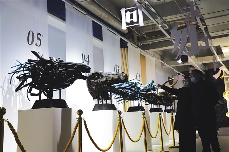 12月28日,黄起才当代艺术展在我市展出。黄起才是太原学院美术系讲师,他用金属废料创作12生肖兽首,在宣传环保的同时展现本地文化特色。 张昊宇 摄