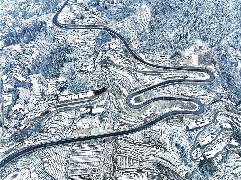 12月27日在湖北省宜昌市秭归县茅坪镇拍摄的雪景(无人机照片)。近日,我国部分地区出现降雪。大地披上银装,成为银装素裹的世界。 新华社 发