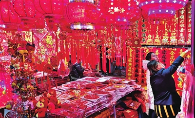 12月30日,双塔西街一商场内,对联、红灯笼等节日用品营造出浓浓的新年氛围。 徐浩轩 摄