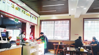 “滴——”社区居民康师傅一刷卡,显示支付7元钱。“中午吃个小碗面就够了,而且这里提供的面调和,品类多且随意自取,不亚于一份小套餐。”康师傅说,自开了社区食堂后,他“两点一线”的生活,变成了“三点一线”,中午下班先到社区食堂吃口午饭,再回家休息。他觉得社区食堂简直就是给他“量身定做”的,食堂环境好,价格还便宜。