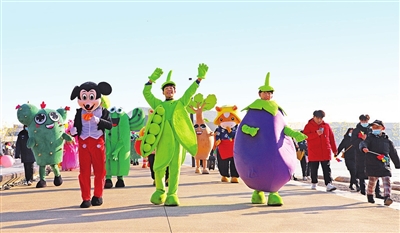 1月1日,在太原植物园东广场,一群可爱美丽的“植物精灵”与游人一起做游戏,带大家走进植物世界。当日,太原植物园举行元旦嘉年华活动,让游园市民度过一个缤纷多彩的新年假日。 张昊宇 摄