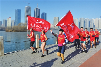 1月1日,由市铁人三项运动协会、市冬泳协会等组织的疯狂铁人联赛在汾河景区举行,吸引了近百人用体育健身的方式迎接新年的到来。 宋卫东 李学军 摄